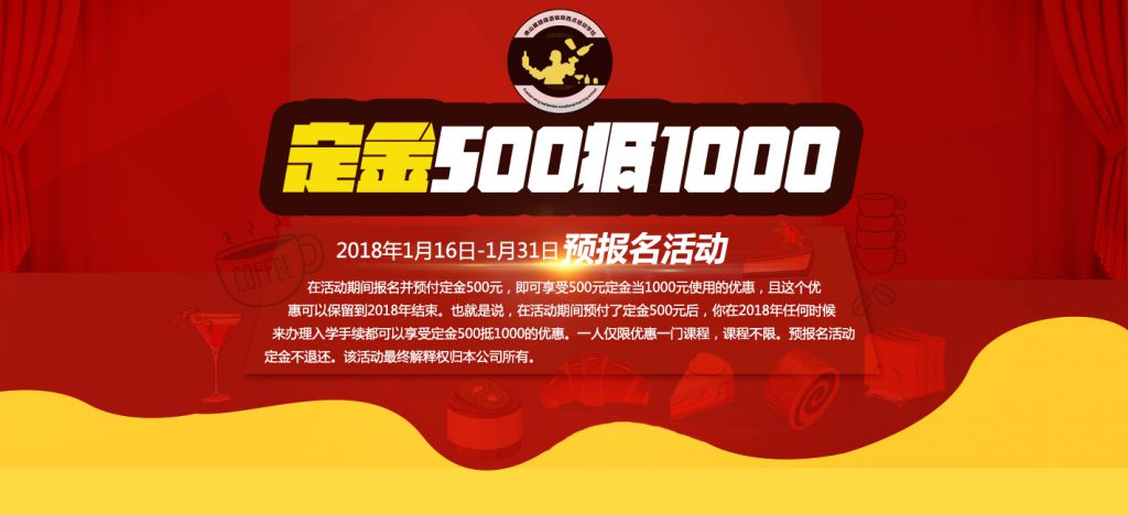 2、預(yù)報名活動內(nèi)容:在活動期間報名并預(yù)付定金500元,即可享受500元定金當(dāng)1000元使用的優(yōu)惠,且這個優(yōu)惠可以保留到2018年結(jié)束。也就是說,在活動期間預(yù)付了定金500元后,你在2018年任何時候來辦理入學(xué)手續(xù)都可以享受定金500抵1000元的優(yōu)惠。