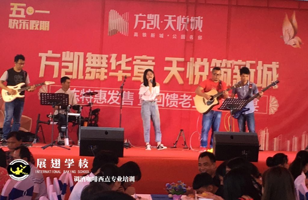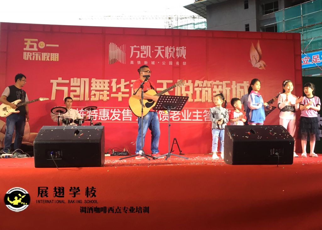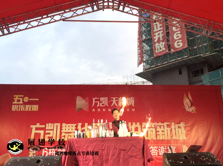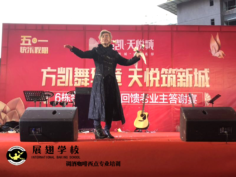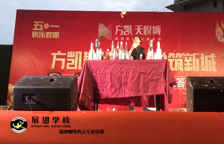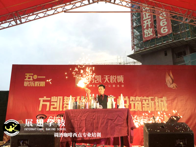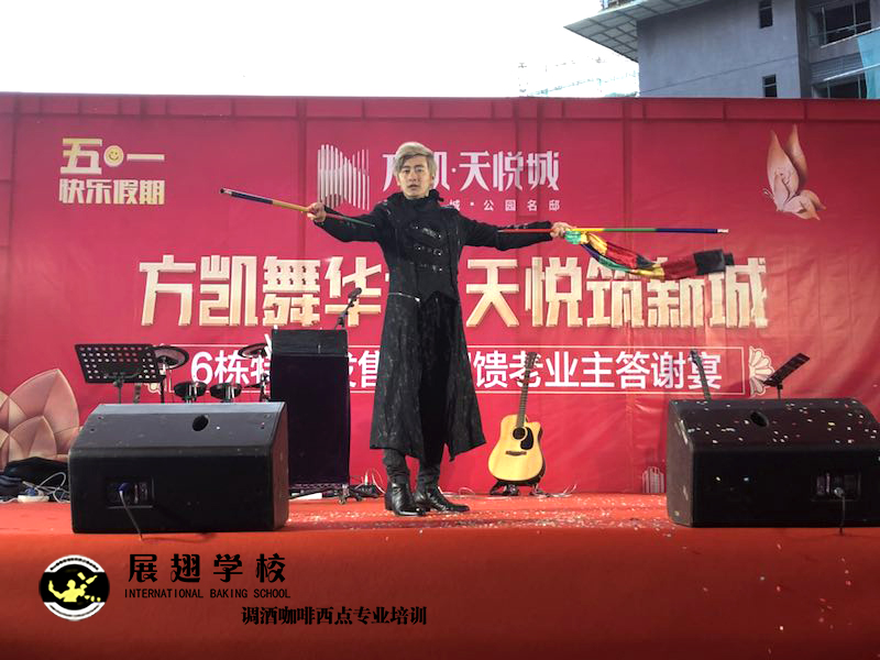 2019年5月1號,方凱舞華章 天悅筑新城業主答謝宴,展翅調酒咖啡西點培訓學校花式調酒助教朱歡洪被邀請花式調酒表演