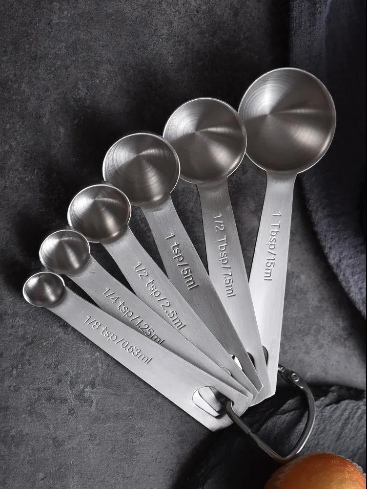 按容積稱量的液體用量杯,極少用量的粉類和液體可以用量匙稱量。量匙常用的一般有四個(gè)規(guī)格:一大匙或叫一湯匙(15ml)、一小匙或叫一茶匙(5ml)、1/2小匙(2.5ml)、1/4小匙(1.25ml),量取時(shí)如果是粉類,按一滿匙并刮去多余的冒尖部分為準(zhǔn)。