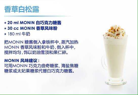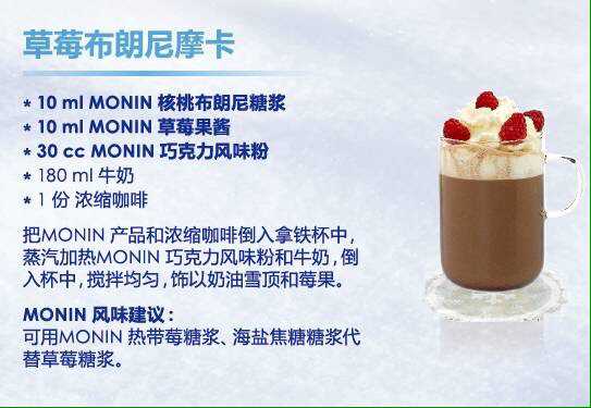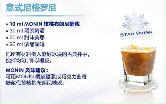 MONIN不僅有可口的冬季熱飲,還有精彩絕倫的雞尾酒,源源不斷的創新飲品概念,隨時打造一杯無論視覺還是味覺也同樣華麗的熱巧克力或咖啡飲品。
