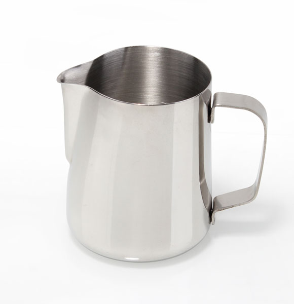拉花鋼杯口為上口窄、下底寬的尖嘴設計,較常見的容量規格有300毫升、600毫升、1000毫升等。使用不同的咖啡杯應選擇不同容量的拉花鋼杯,才不易造成牛奶量的浪費或不足。